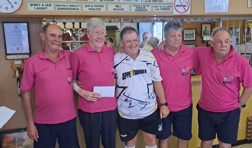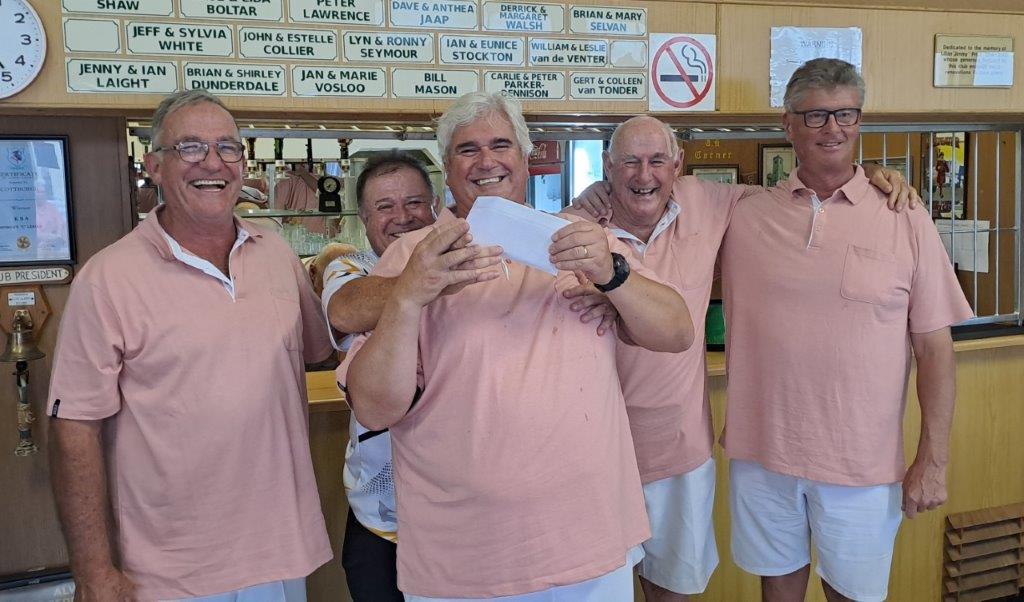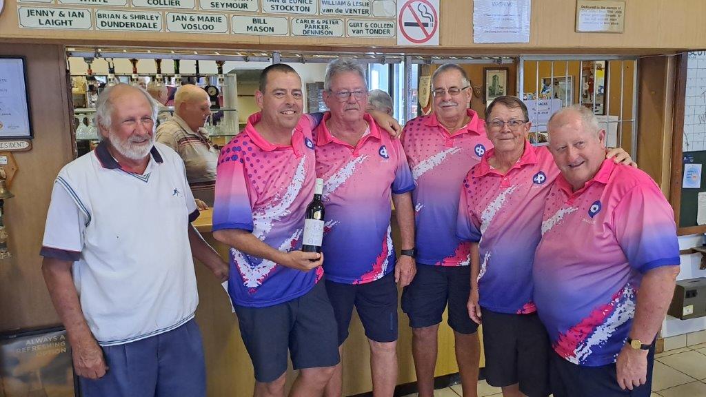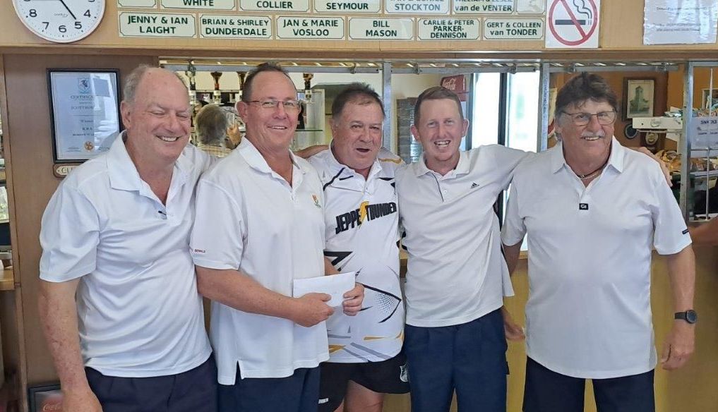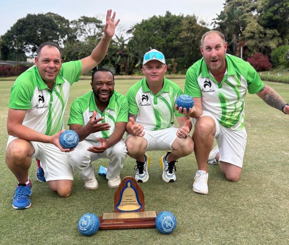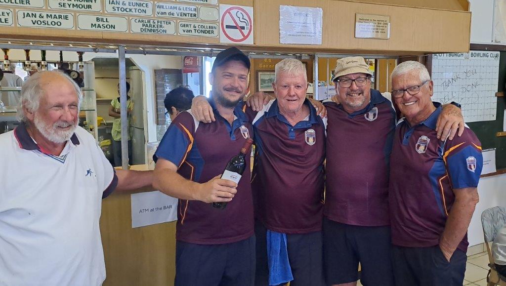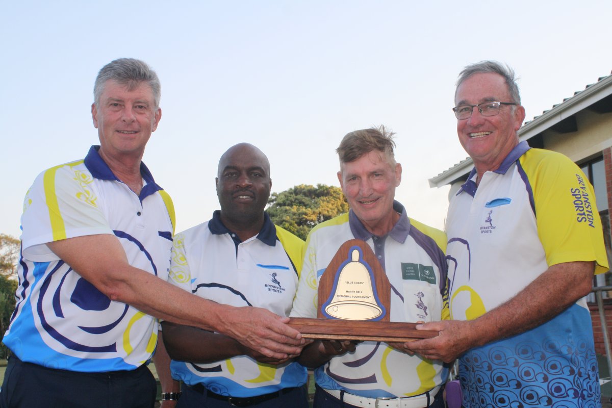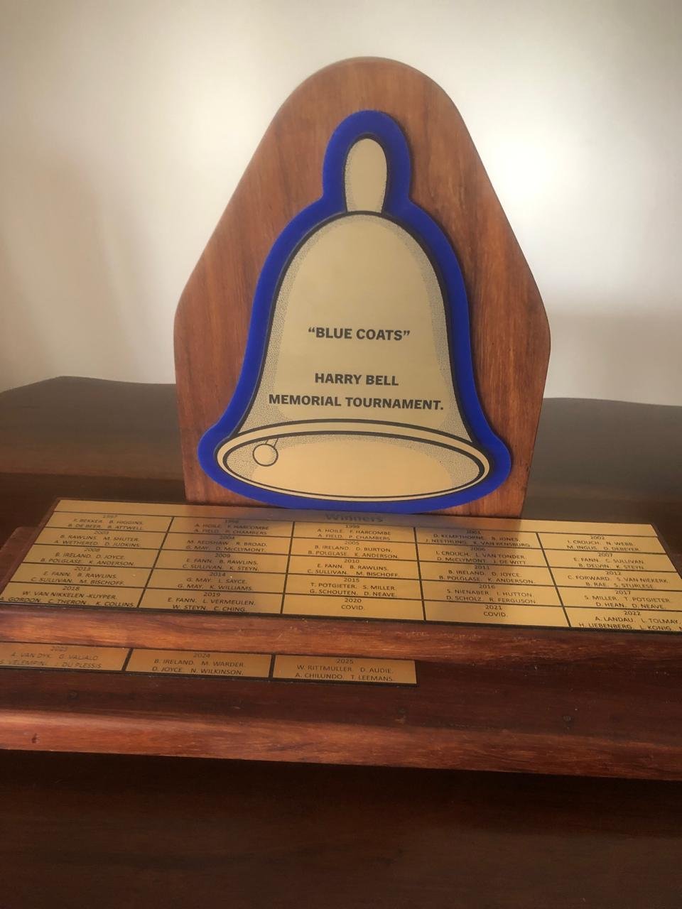 Having participated in the provincial tournaments, Harry conceived of the idea of the Blue Coats tournament. His concept was that a fours tournament should be held once a year with each team having at least one provincial or ex provincial player. Th tournament was to be competitive with high quality bowls but with a big emphasis on sportsmanship and camaraderie. The motto developed for the tournament was “Fellowship Above All”. The name derives from the blazers that all the provincial teams wore in the days that Harry played. Harry played for Southern Transvaal who wore blue blazers and hence the tournament was given the name of the “Blue Coats” With Harry’s passing, as a tribute to him, the tournament was also recognised as “The Harry Bell Memorial Tournament”